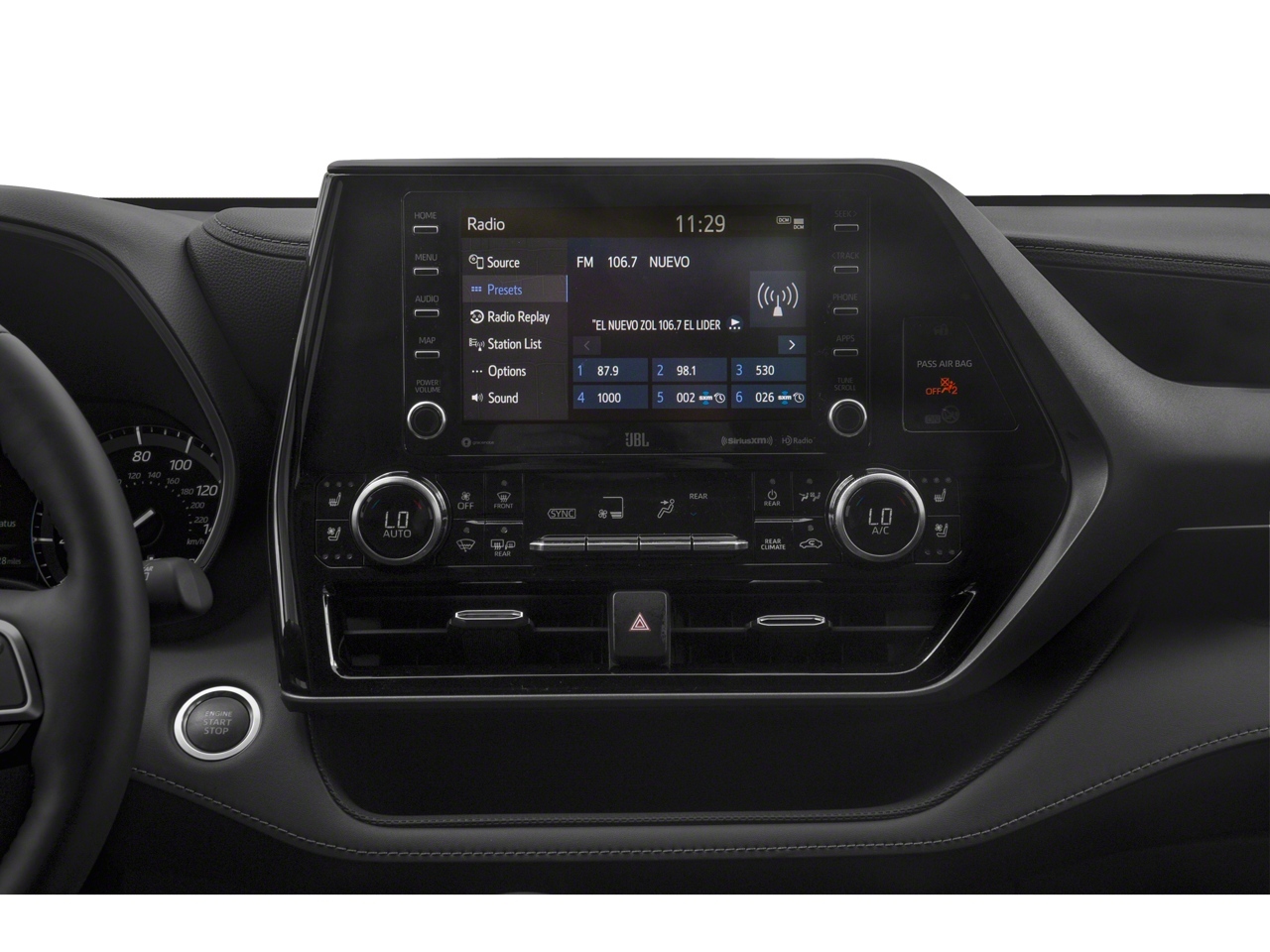 - Radio: Premium Audio w/JBL Clari-Fi -inc: 11 speakers, subwoofer, amplifier, 8" touch-screen, HD Radio, USB media port, hands-free phone capability, dynamic navigation w/up to 3-year trial, dynamic POI search, dynamic voice recognition and music streaming via Bluetooth® wireless technology, Android Auto, Apple CarPlay and Amazon Alexa compatible, SiriusXM w/3-month Platinum Plan trial subscription, Connected Services - Safety Connect w/1-year trial, Service Connect w/10-year trial, Remote Connect w/1-year trial, Wi-Fi Connect w/up to 2GB within 3-month trial and Destination Assist w/1-year trial, See Toyota.com/audio-multimedia for details